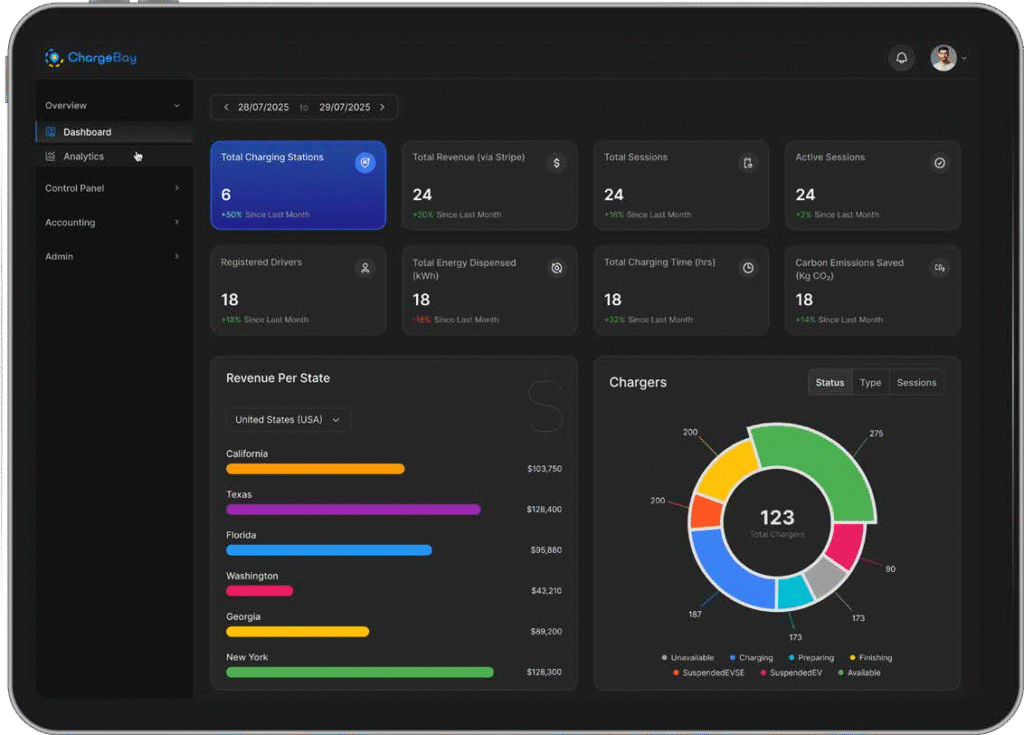 ChargeBay offers the best and most affordable 360 charging managment system compared to market leaders. From installation to revenue-generation, we’re with you every step of the way.